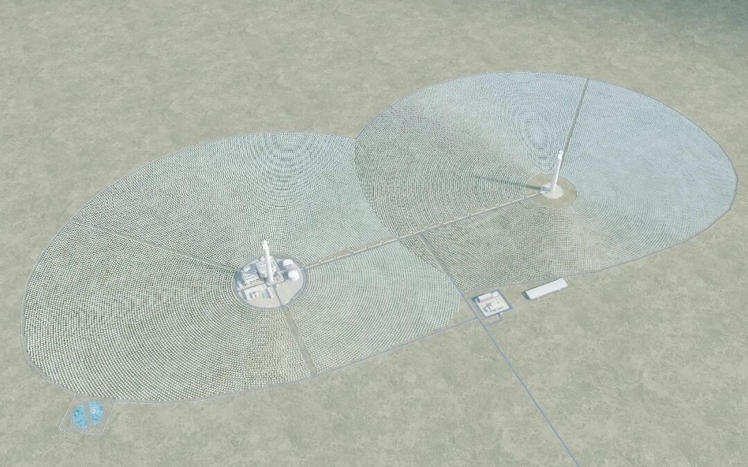 世界首个“双塔一机”风光热储一体化项目,安装于三峡恒基能脉(酒泉)新能源发电有限公司