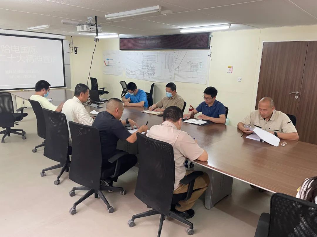 国际公司党委班子成员深入迪拜哈斯彦电站项目现场,为国际公司火电第六事业部党总支哈斯彦项目部党支部党员职工宣讲党的二十大精神,并就公司转型发展进行了调研座谈。大家一致认为,要深入学习贯彻党的二十大精神,心系“国之大者”,把高质量建设哈斯彦项目作为践行党的二十大精神的生动实践,进一步经验总结,为后续项目执行积累宝贵经验财富。