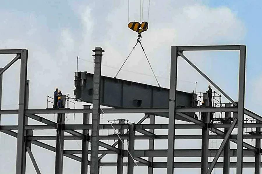 4月3日,锅炉大板梁一次吊装成功。