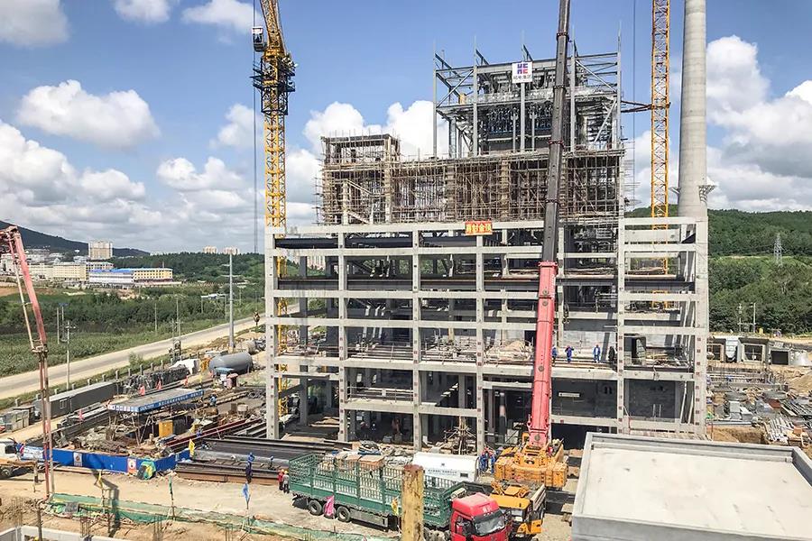 2019年11月18日,锅炉钢结构吊装完成。