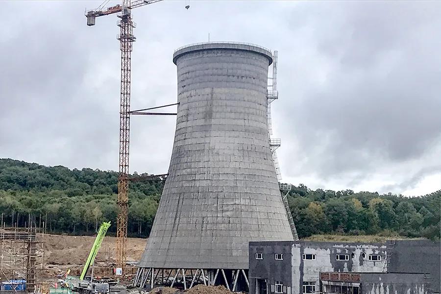 8月24日,自然通风冷却塔结构到顶。