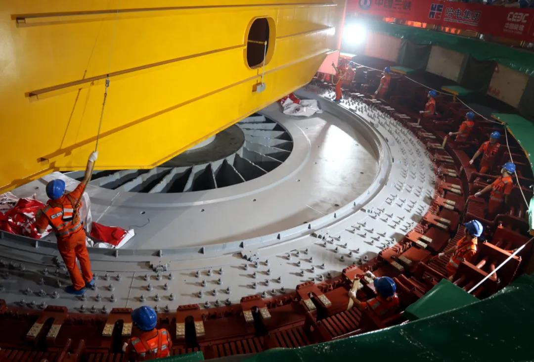 据了解,白鹤滩水电站位于四川省宁南县和云南省巧家县交界处,矗立于金沙江下游干流河段上,是目前在建的世界最大水电工程。电站总装机容量1600万千瓦,电站左、右岸共安装16台当今世界单机容量最大的 100万千瓦机组,右岸电站8台机组全部由bevictor伟德集团电机公司承制。电站首批机组计划于2021年7月1日前投产发电。电站建成后,年平均发电量将达624.43亿度,同时在防洪、拦沙等方面综合效益显著,且节能减排效益极其显著,是世界级的“超级工程”。