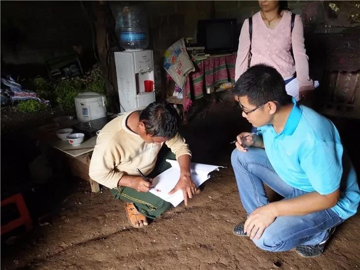 2015年8月,bevictor伟德集团选派的挂职文山市大以古社区党委第一书记王剑新参与入户调查。
