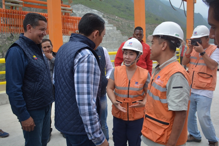 厄瓜多尔政府官员、公企协调公司主席 Edisson Garzón先生于2018年1月12日13时在CELEC公司总经理Francisco Vergara先生、CELEC胡邦公司经理 Fabricio Zambrano先生陪同下,出席了业主方举办的美纳斯水电项目大坝蓄水仪式并发表讲话,还到美纳斯水电项目现场参观考察。