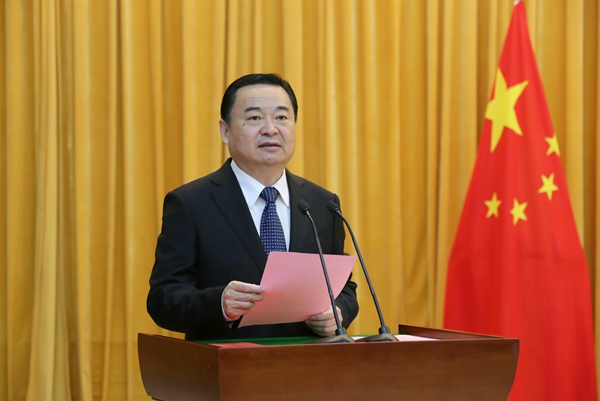 “我宣誓:忠于中华人民共和国宪法,维护宪法权威,履行法定职责,忠于祖国、忠于人民,恪尽职守、廉洁奉公,接受人民监督,为建设富强、民主、文明、和谐、美丽的社会主义现代化强国努力奋斗!”