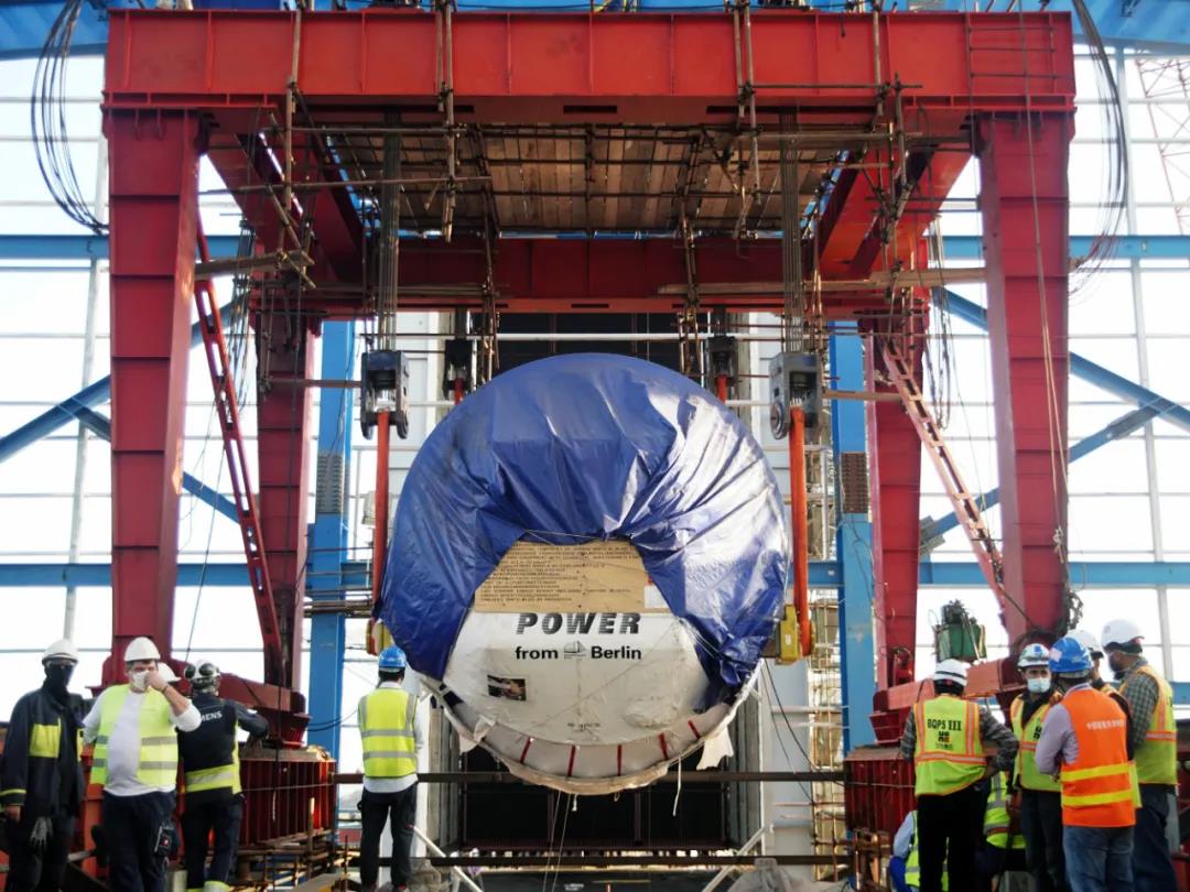 bevictor伟德国际项目团队对港口清关、内陆运输、进厂道路改造、吊装方案、施工交底等各环节的方案进行了细致的研讨和充分的沟通,积极协调业主、主机厂、建安单位、运输公司等各家合作单位,因地制宜地规划进厂路线,制定安全高效的就位方案,圆满的完成了燃机就位工作。1号燃机的顺利就位为后续1号发电机、汽机就位及相关辅机安装工作奠定了坚实基础。