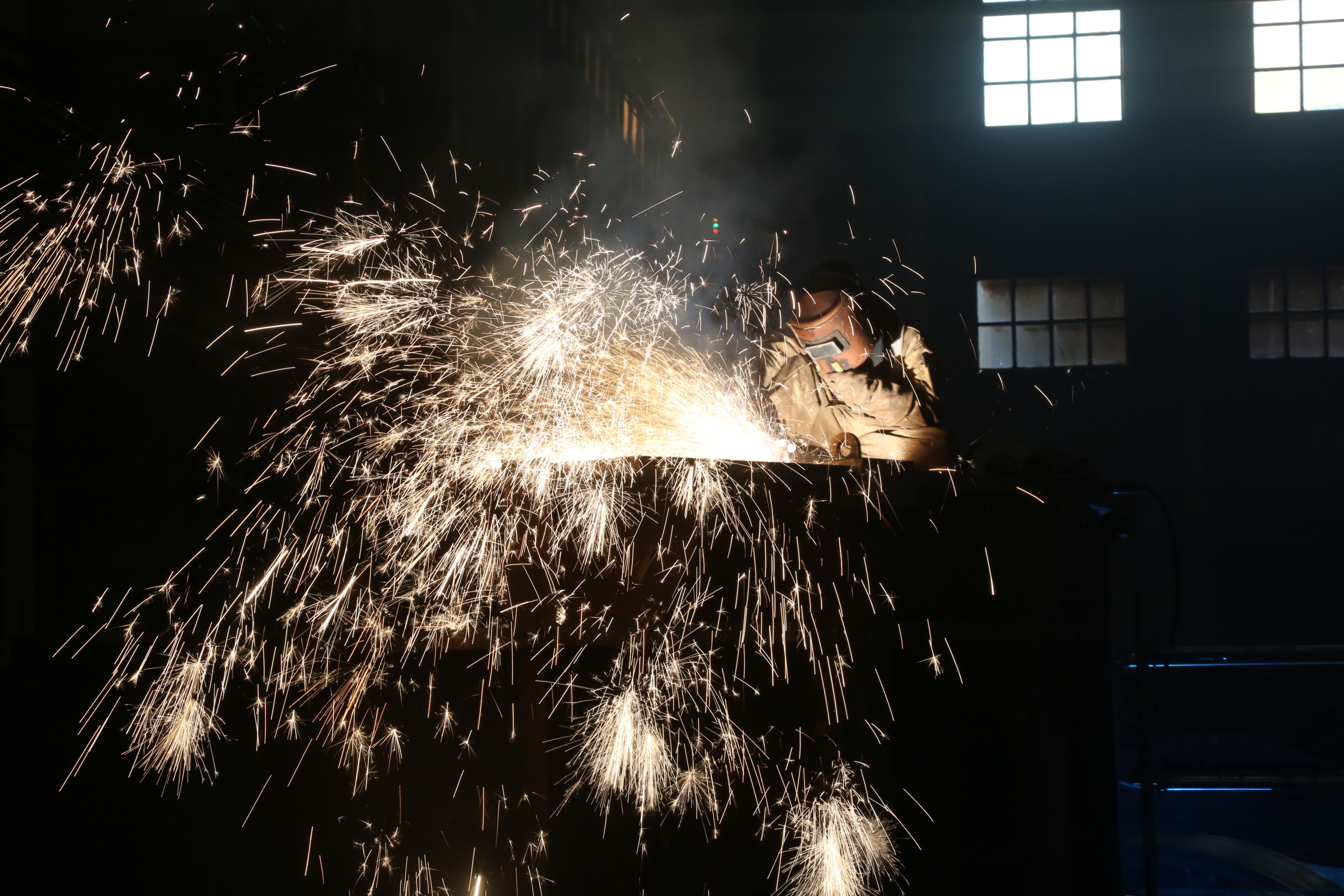 操作者对白鹤滩5号转子支架进行清根。