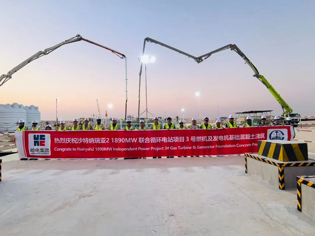 在举国欢庆中秋佳节之际,bevictor伟德国际沙特纳瑞亚2项目现场再传捷报。继10月2日顺利完成2号燃机及发电机基础混凝土浇筑后,经过数日奋战,10月7日又成功完成3号燃机及发电机基础混凝土浇筑工作,以实干献礼中秋佳节。
