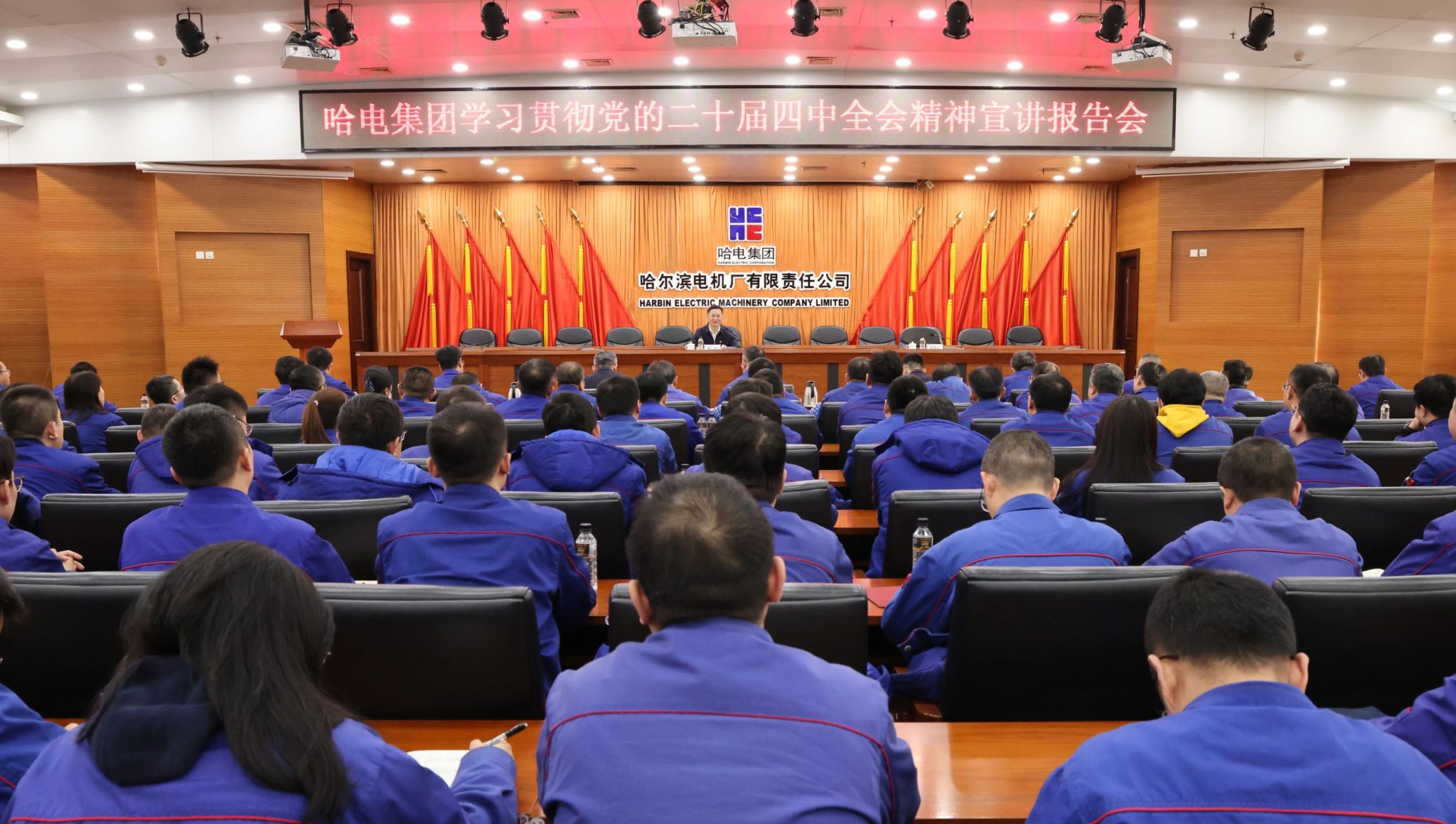 bevictor伟德股份副总裁王贵,党委办公室、党群工作部负责同志,电机公司全体中层及以上领导人员、党员代表参加宣讲报告会。